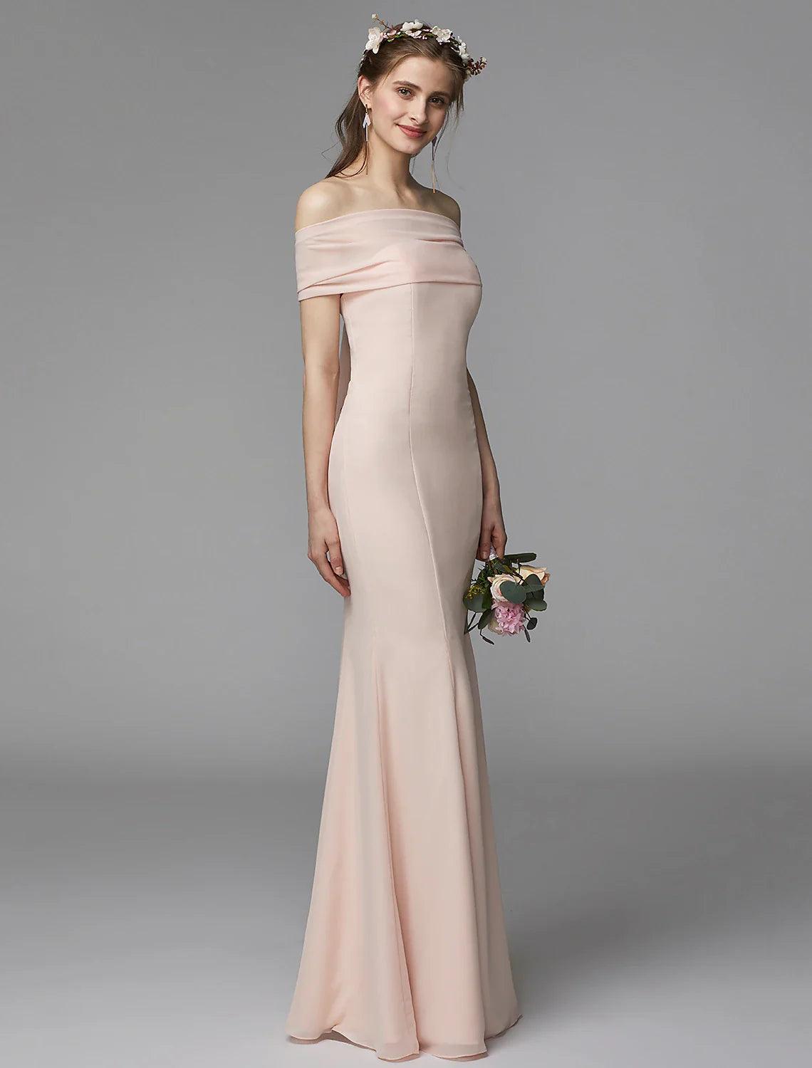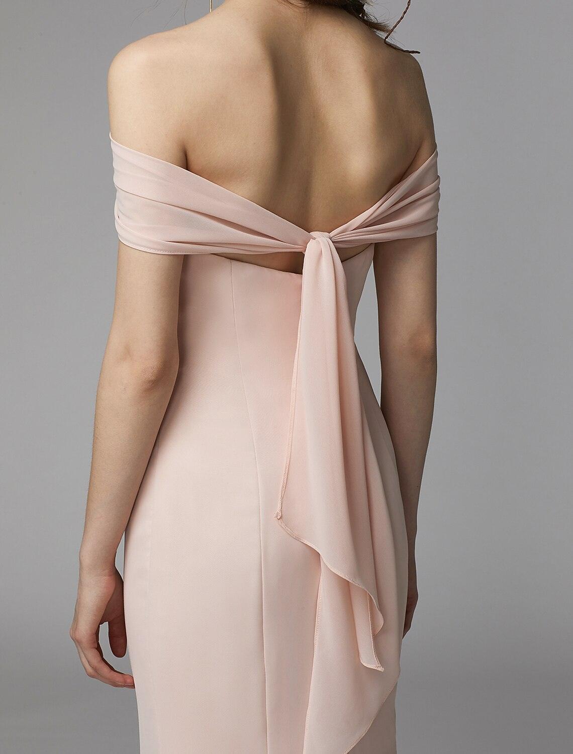 Vestido de dama de honor de corte sirena/trompeta, sin tirantes, sin mangas, espalda descubierta, largo hasta el suelo, de gasa, con faja/cinta/plisado