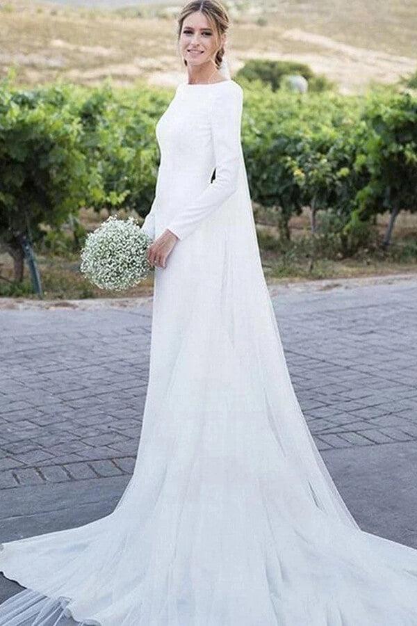 Vestido de novia sencillo, modesto, de manga larga, corte tubo, estilo campestre. MW515