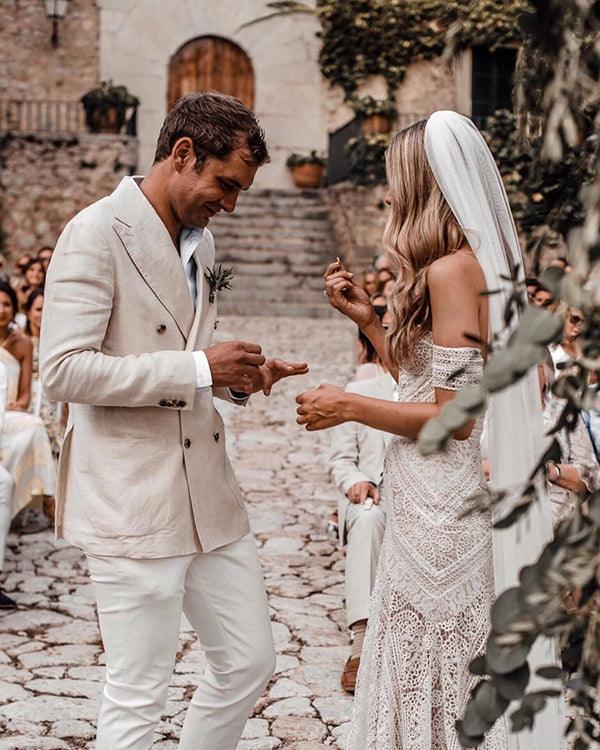 Vestido de novia estilo bohemio rústico color marfil con encaje y escote corazón para playa.MW267.