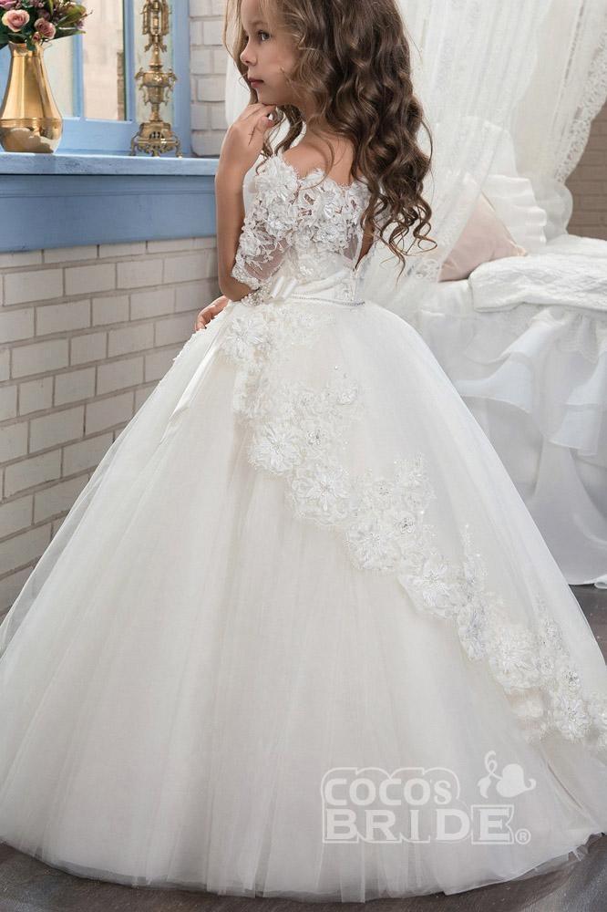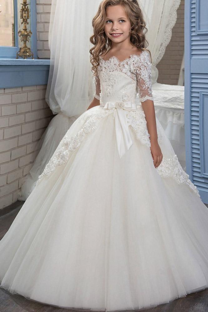 aaa Numbersea White Off The Shoulder 1/2 Sleeves Ball Gown Flower Girls Dress