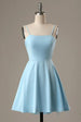 A-Line Spaghetti Straps Short Blue Satin Homecoming Dress