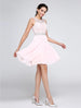 A-Line Special Occasion Dresses Party Dress Homecoming Graduation Short / Mini Sleeveless Illusion Neck Pink Dress Chiffon V Back Low Back with Crystals