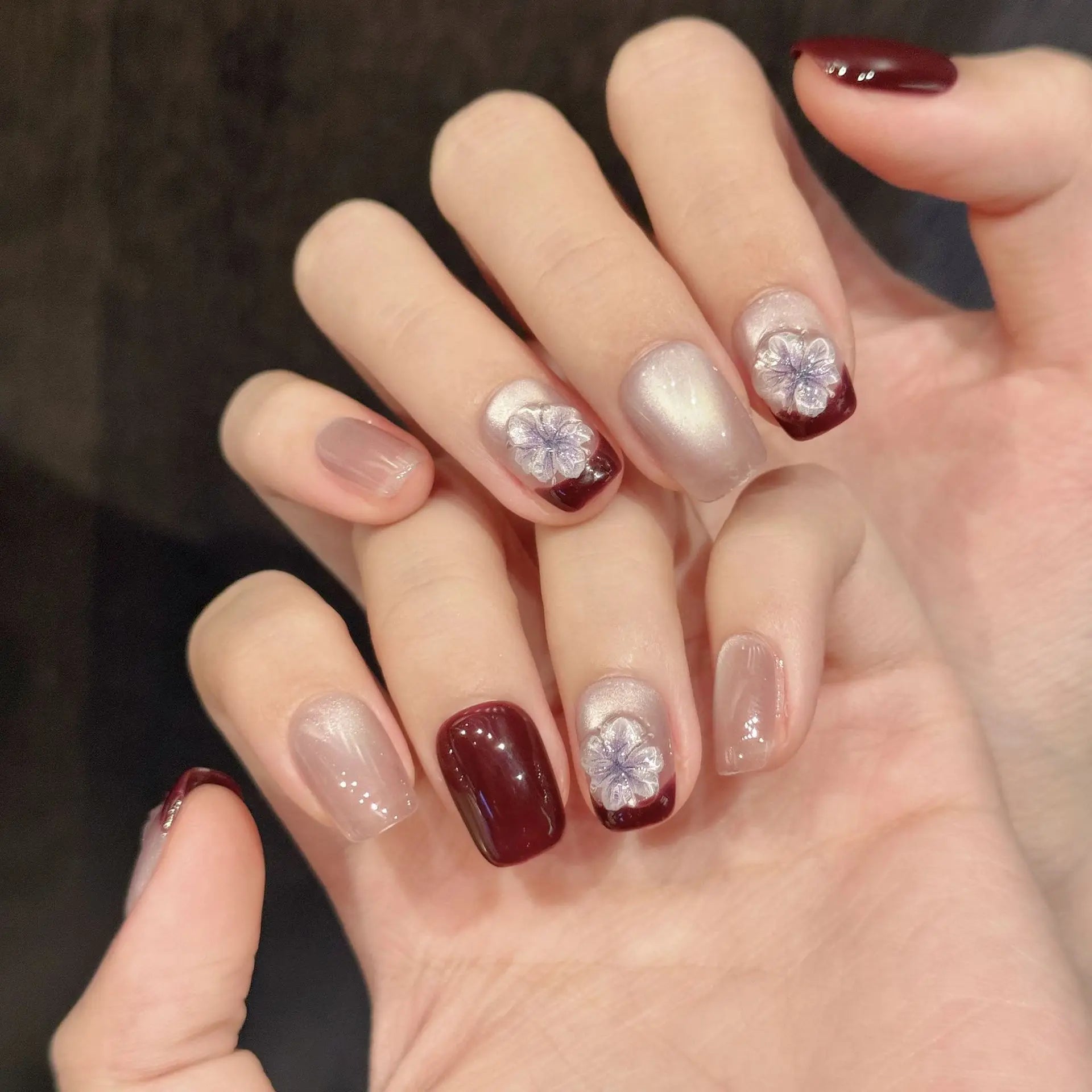 Achieve salon-quality nails in minutes with our stunning press-on nail sets! Designed for convenience and style. each set features trendy. durable designs that will keep you looking flawless for up to two weeks.