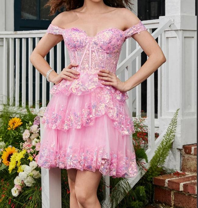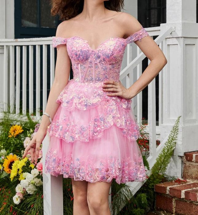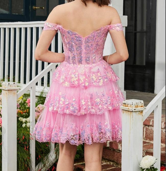 Homecoming Dresses Sweetheart Sequins Tiered Tulle A-Line Mini Dress