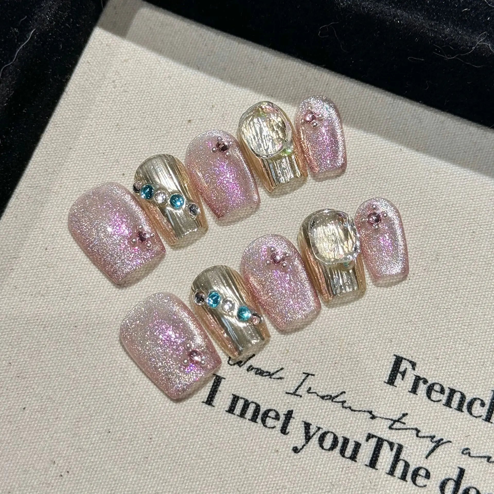 Achieve salon-quality nails in minutes with our stunning press-on nail sets! Designed for convenience and style. each set features trendy. durable designs that will keep you looking flawless for up to two weeks.
