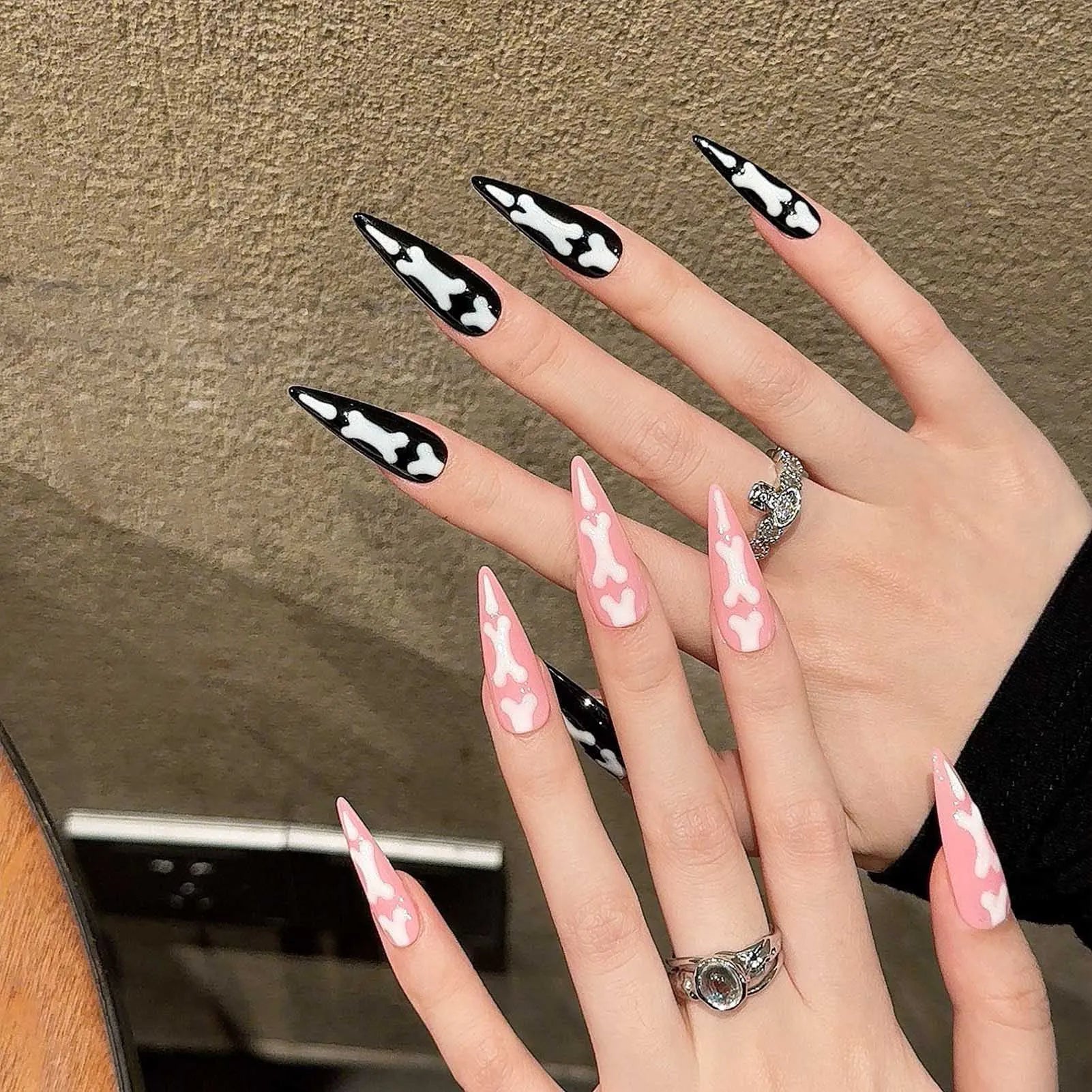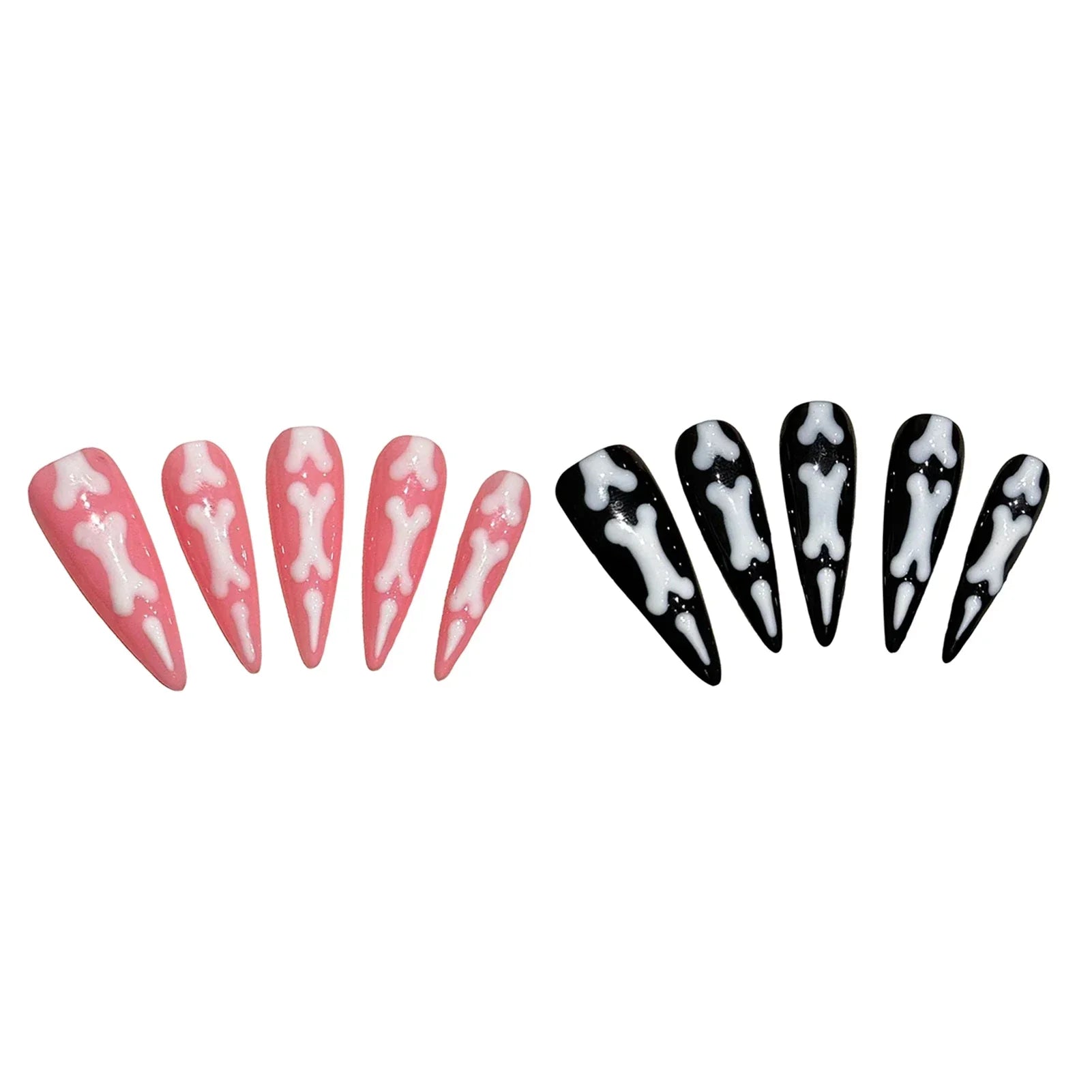 Unique Bone Printed Design: The Resin Fake Nails with Bone Printed feature a distinctive design that adds a touch of edginess to your nails. The bone print stands out and adds a unique element to your overall look. making them suitable for hot girl dress matching or to express your personal style.