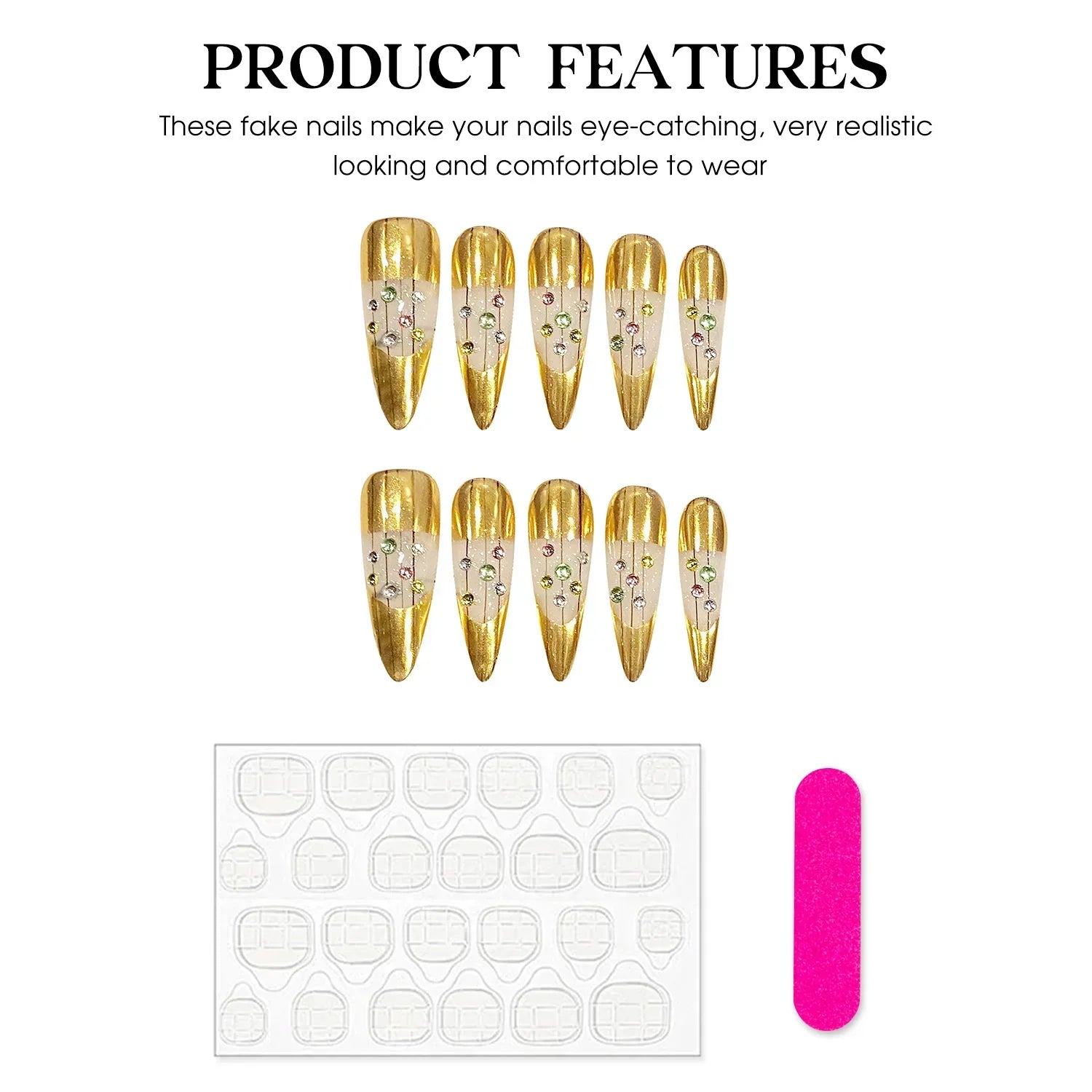 Effortless Application: Lightweight and easy to apply. these gentle gold fake nails are designed for simple wear. making them ideal for women and girls looking for a hassle-free nail salon experience.