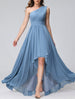 A-Line Bridesmaid Dress One Shoulder Sleeveless Blue Asymmetrical Chiffon with Solid Color