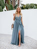A-Line Bridesmaid Dress V Neck Sleeveless Elegant Floor Length Chiffon with Bow(s) / Pleats / Slit