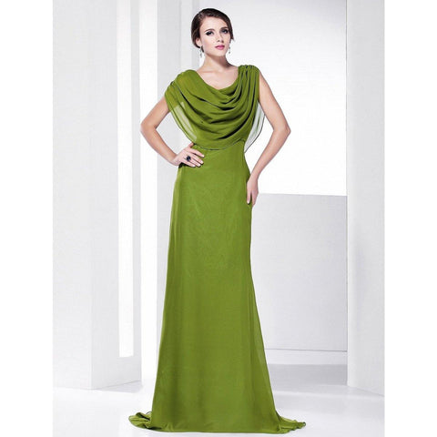 A-Line Celebrity Style Inspired Formal Evening Military Ball Dress Cowl Neck Short Sleeve Sweep / Brush Train Chiffon with