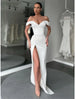 A-Line Evening Gown Elegant Dress Formal Black Dress Plus Size Court Train Long Sleeve Off Shoulder Satin with Buttons Pleats Slit