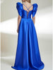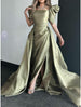 A-Line Evening Gown Elegant Dress Formal Christmas Red Green Dress Court Train Short Sleeve Square Neck Satin with Pleats Ruched Slit