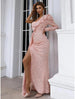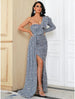 A-Line Evening Gown Elegant Dress Formal Sweep / Brush Train Long Sleeve One Shoulder Sequined with Glitter Ruched Slit