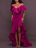 A-Line Evening Gown Minimalist Dress Wedding Guest Homecoming Asymmetrical Sleeveless Off Shoulder Stretch Satin with Ruffles Slit