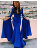 A-Line Mermaid / Trumpet Evening Gown Minimalist Dress Party Wear Prom Sweep / Brush Train Long Sleeve V Neck Charmeuse with Fringe