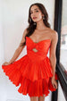 This A-Line Strapless Keyhole Short Orange Homecoming Dress PD538 is a must-have for this year's homecoming season. Featuring a vibrant orange color. a keyhole neckline. and a fun mini length. this dress combines style and cuteness perfectly. The A-line silhouette is a classic homecoming dress style that offers a flattering fit for all body types. Stand out and make a statement in this gorgeous dress.