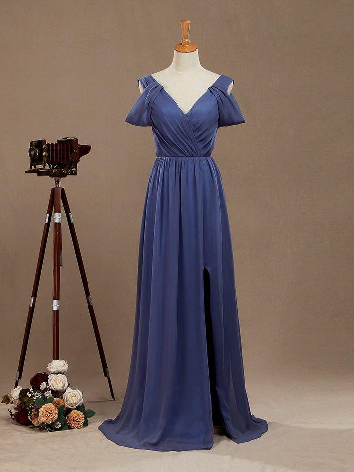 1. A-Line V-Neck Floor-Length Chiffon Prom Formal Evening Dress with Flutter Sleeves Made-to-order.