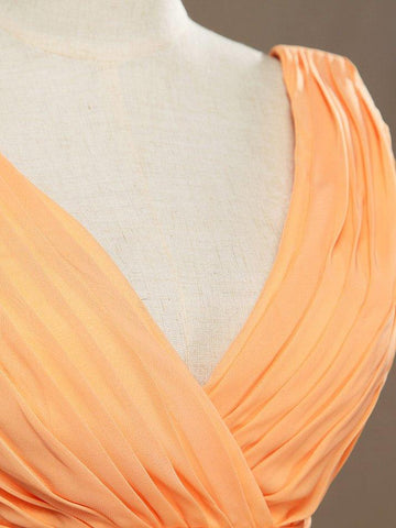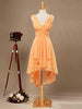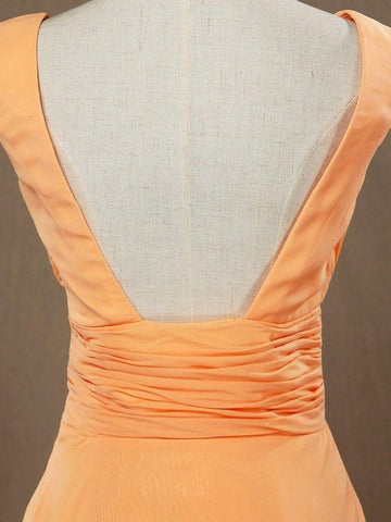 1. A-Line V-neck High-low Chiffon Bridesmaid Dress with Draping Criss Cross Ruching Open Back Made-to-order.