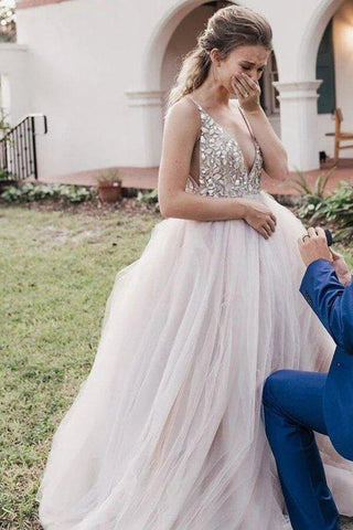 Ball Gown Beaded Bodice Deep V-neck Wedding Dresses. Bridal Gown. MW622