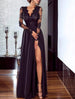 Black Wedding Dresses A-Line V Neck Long Sleeve Floor Length Lace Chiffon Gothic Fall Halloween Beach Bridal Gowns With Appliques Split Front