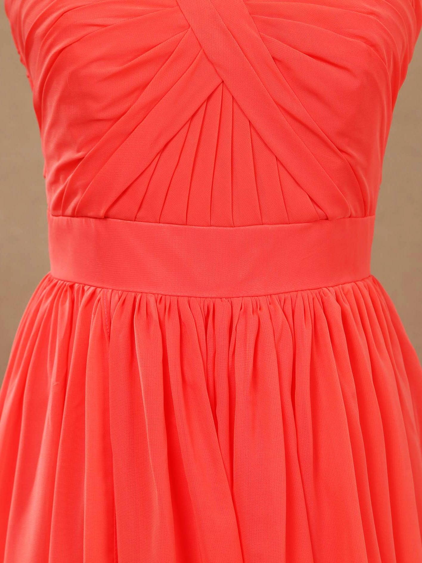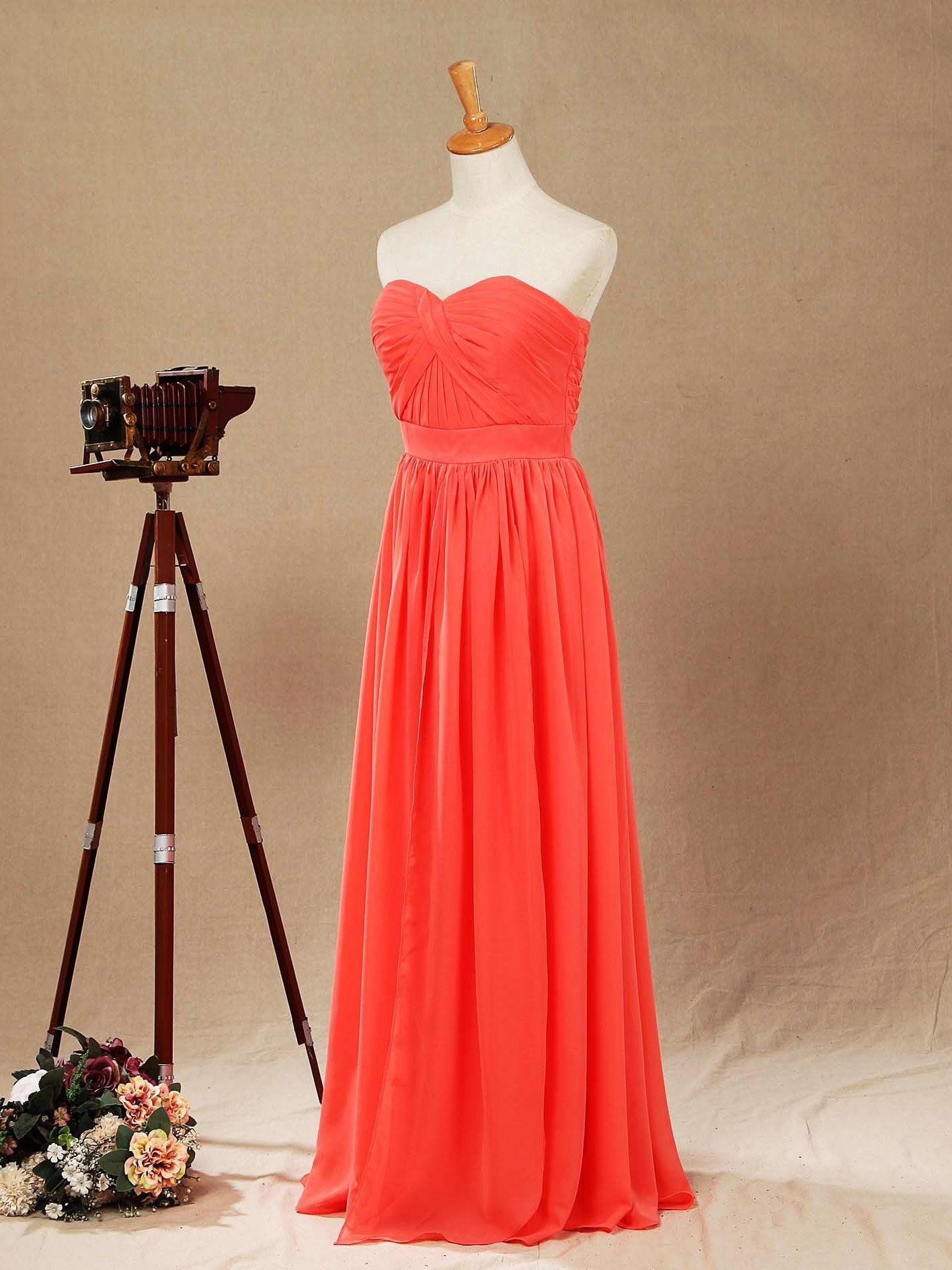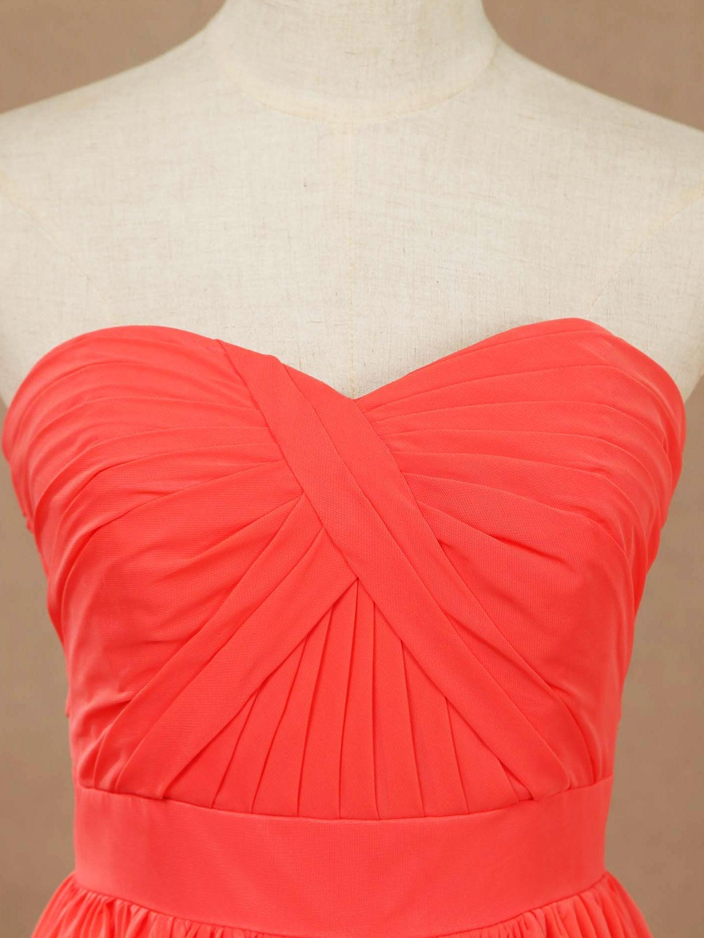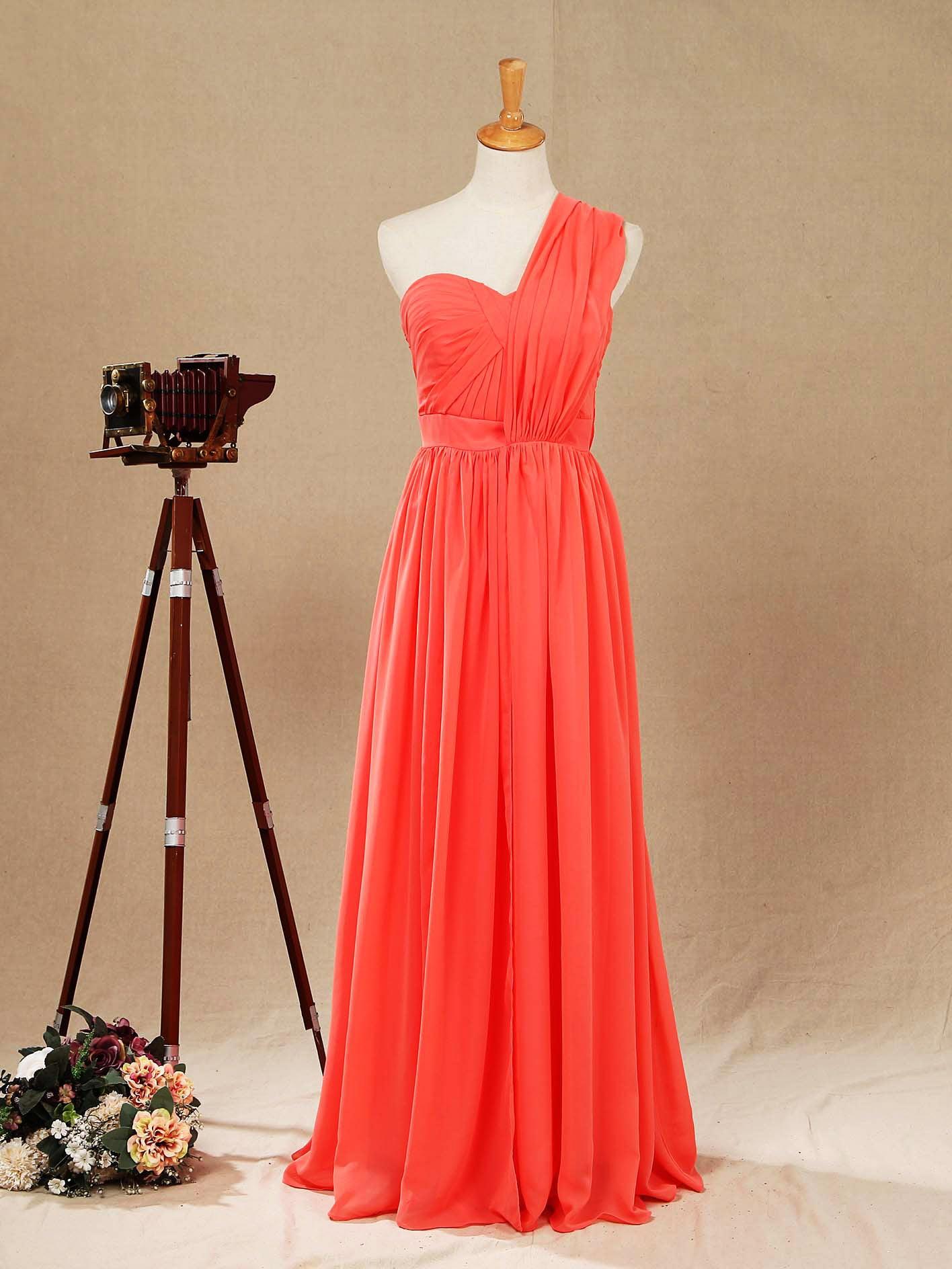 Convertible Coral Chiffon Bridesmaid Dress A-line One Shoulder Halter-neck Strapless Sweetheart Made-to-order.