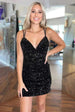 This cute black v-neck homecoming dress from boasts a backless design and is made with a sparkly sequins material for above-average glamour. Perfect for any special occasion. this tight-fitting dress is sure to make a statement.