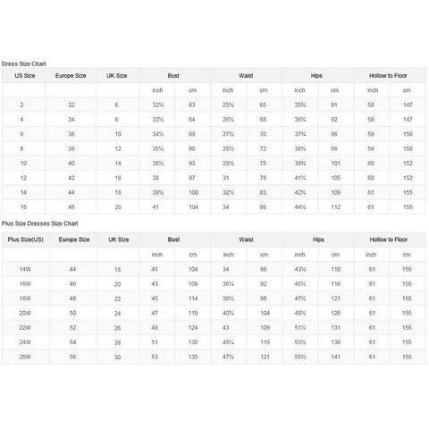 | US SIZE | BUST(inch/cm) | WAIST(inch/cm) | HIP(inch/cm) | HOLLOW TO HEM(inch/cm)) |