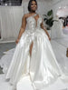 Formal Wedding Dresses Ball Gown One Shoulder Regular Straps Court Train Satin Bridal Gowns With Beading Split Front