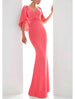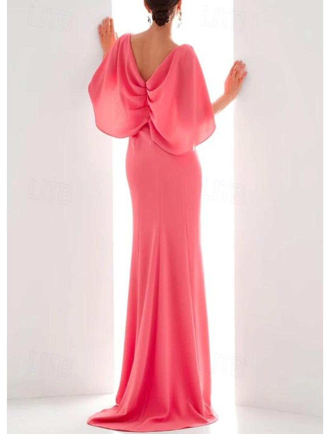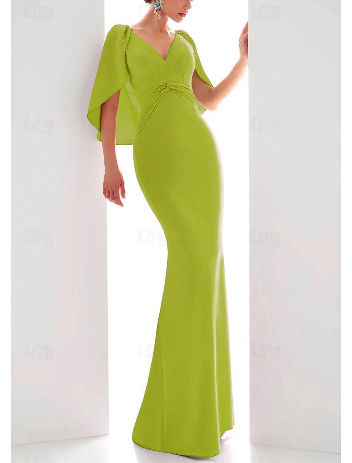 Gown Elegant Formal Fall Floor Length Short Sleeve V Neck Stretch Chiffon with Ruched Ruffles Evening Dress