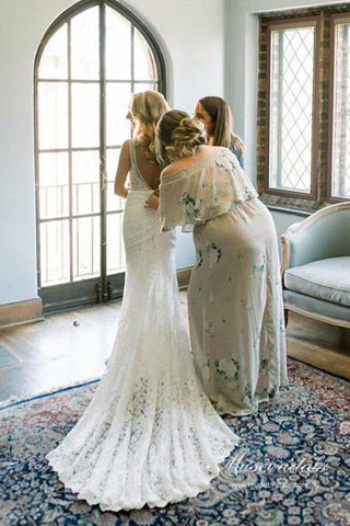 Ivory Lace Mermaid Backless V-neck Beach Wedding Dresses. Bridal Gown. MW689