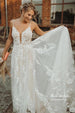 Ivory Tulle A-line V-neck Lace Appliques Wedding Dress. Bridal Gown. MW869