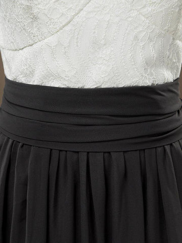 For the material: Outside chiffon and lace. built-in bra. and satin underlining.