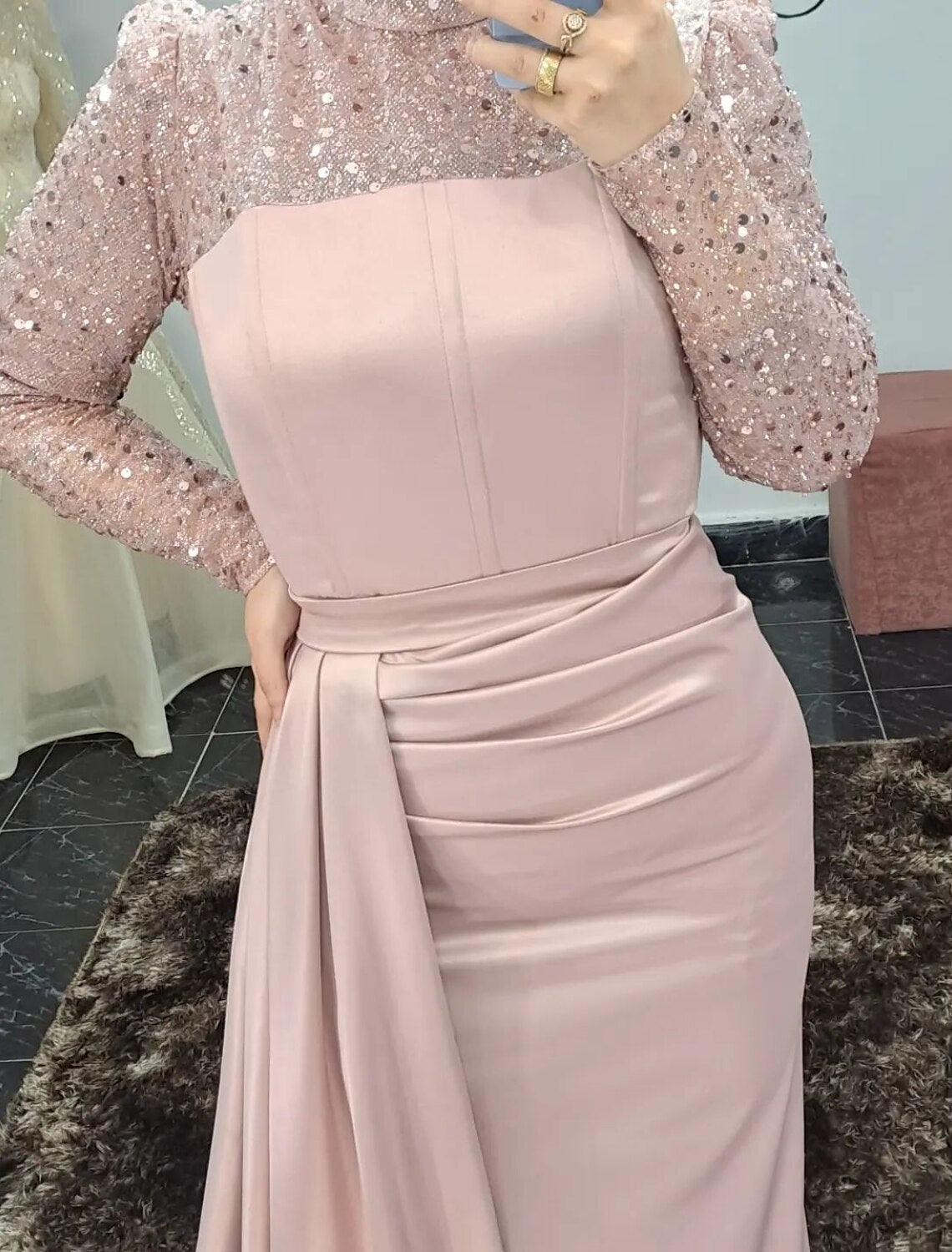 Mermaid / Trumpet Evening Gown Glittering Dress Masquerade Black Tie Floor Length Long Sleeve Jewel Neck Fall Wedding Reception Satin with Pearls