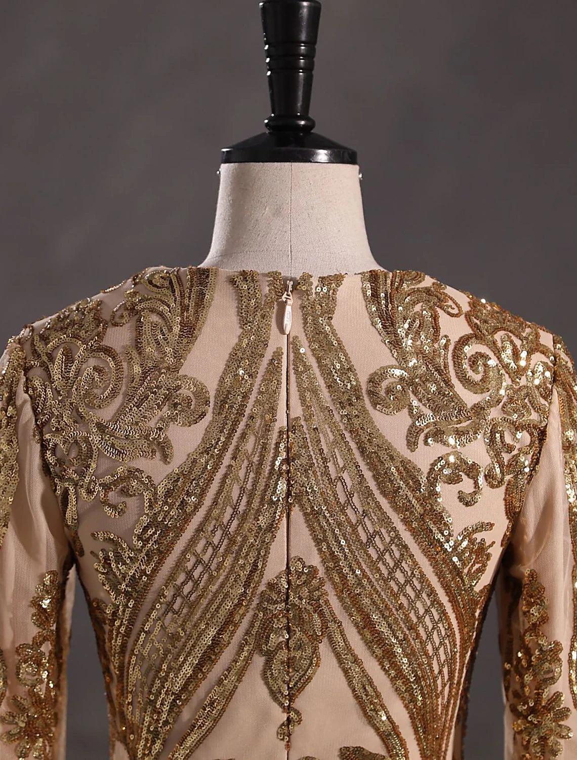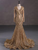 Mermaid / Trumpet Evening Gown Sparkle & Shine Dress Carnival Formal Court Train Long Sleeve V Neck African American Lace with Sequin