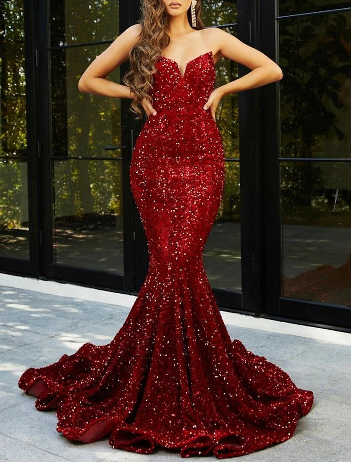 Mermaid / Trumpet Prom Dresses Luxurious Dress Formal Evening Valentine's Day Sweep / Brush Train Sleeveless Off Shoulder Sequined with Sequin