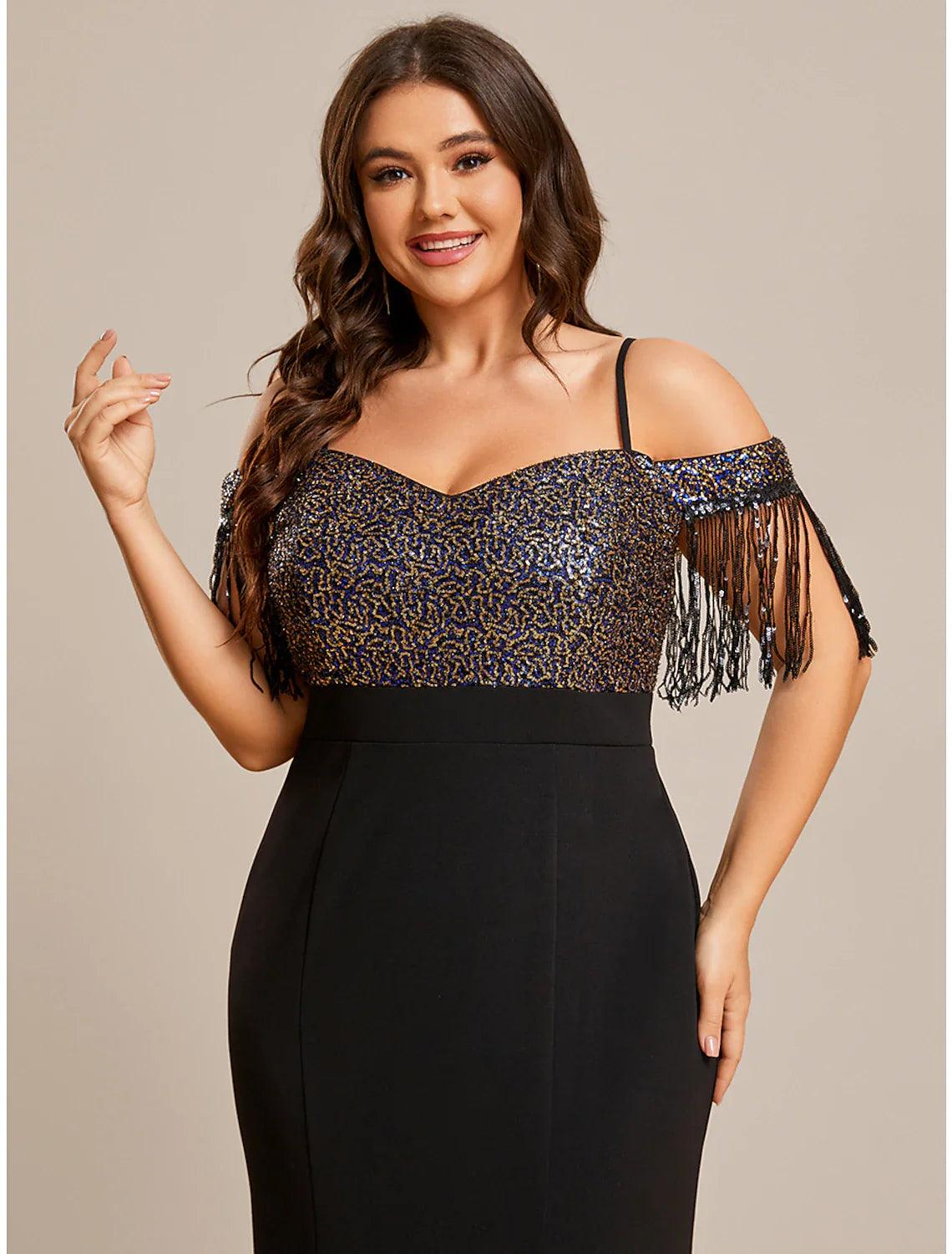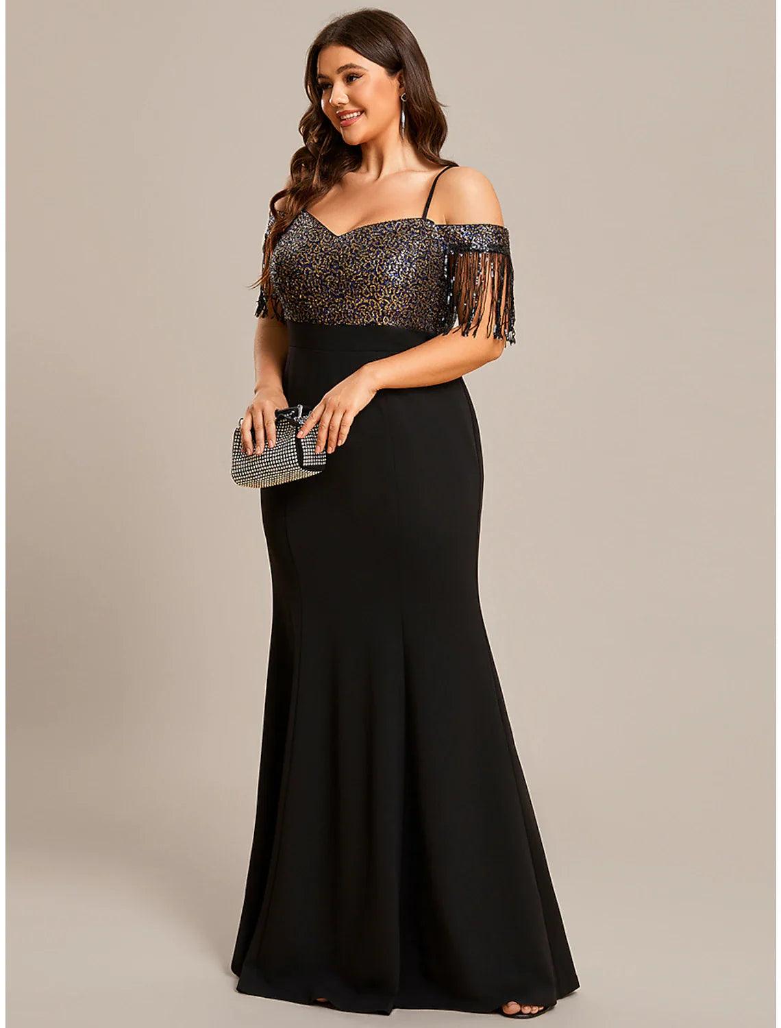 Mermaid / Trumpet Wedding Guest Dresses Minimalist Dress Formal Black Tie Floor Length Short Sleeve Off Shoulder Stretch Fabric with Fringe Tassel