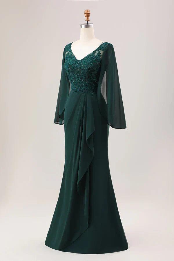 Mother Of Bride Dress Glitter Mermaid Chiffon Long Sleeves