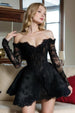 This long sleeve black homecoming dress boasts a stylish off-shoulder design and elegant beading. making it unique and perfect for any formal occasion. Stay stylish and comfortable all night long with this corset homecoming dress.