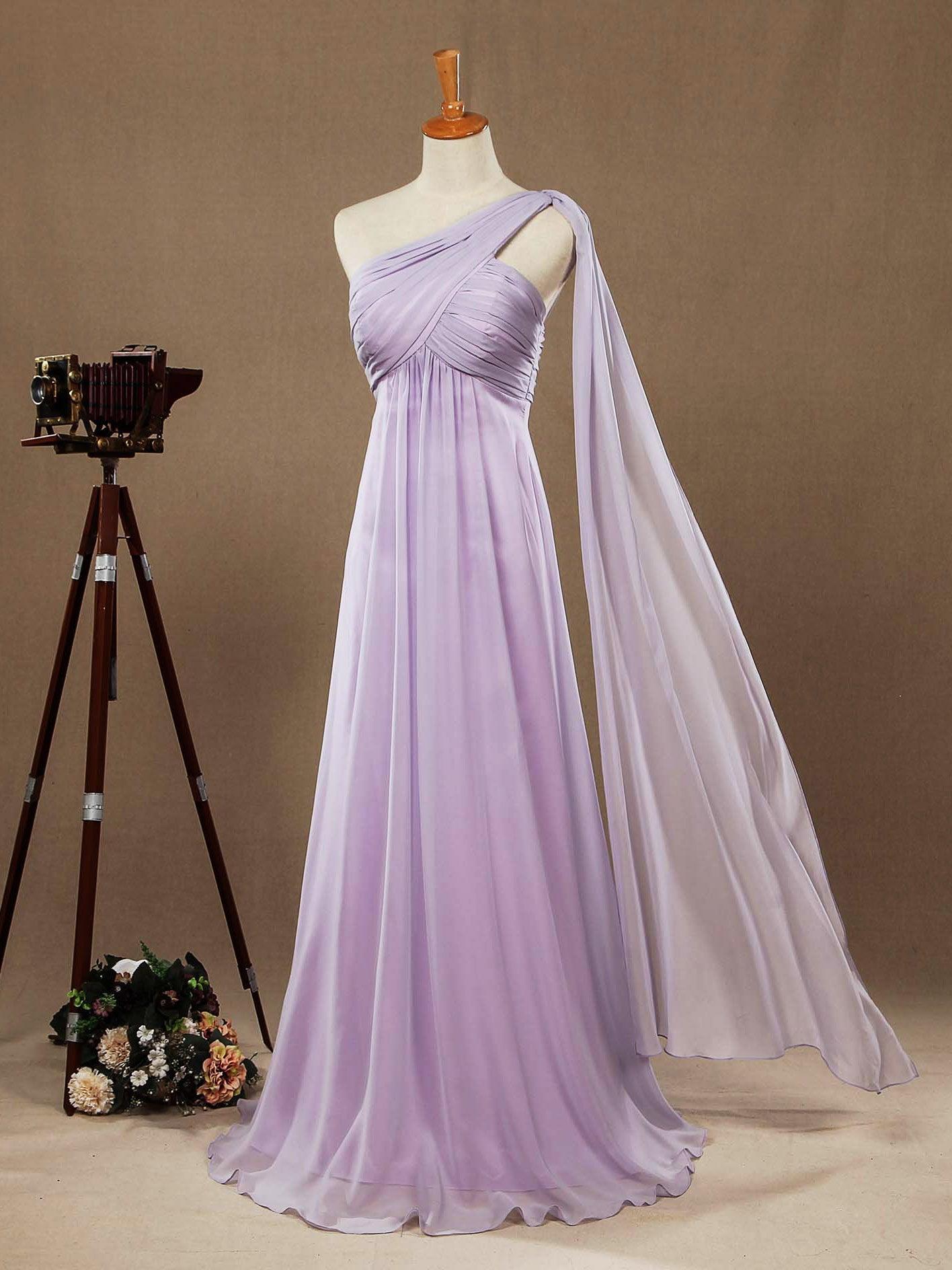 One Shoulder A-Line Floor-Length Chiffon Prom Formal Evening Dress with Long Flap Made-to-order.