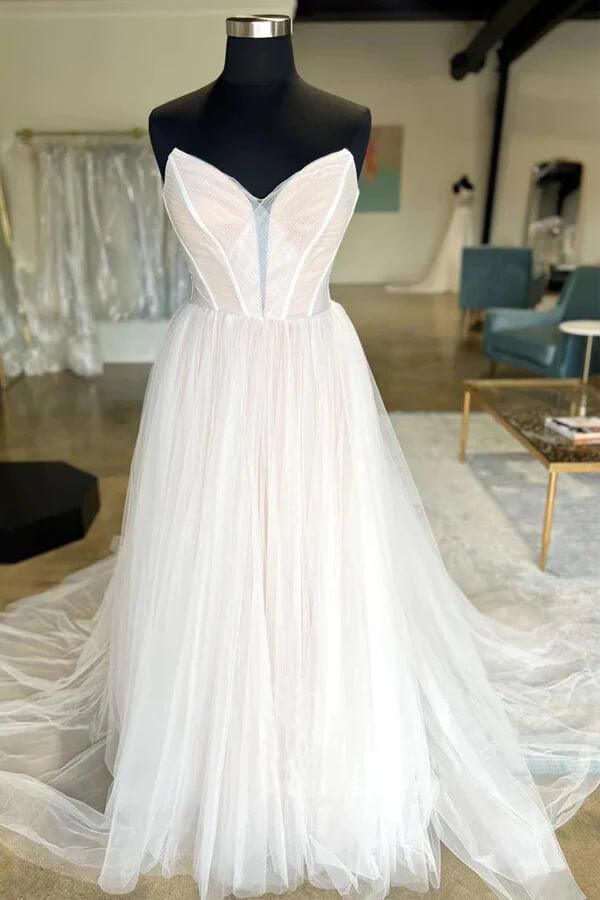 Pleated Tulle A-line Sweetheart Neck Wedding Dresses. Bridal Gown. MW976
