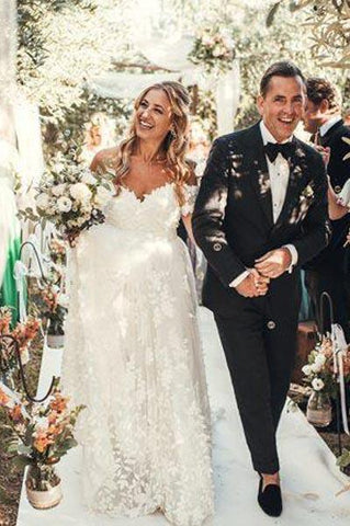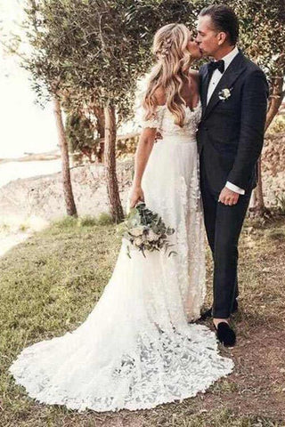 Rustic Ivory Lace Wedding Dresses Off the Shoulder Beach Wedding Dresses.MW490