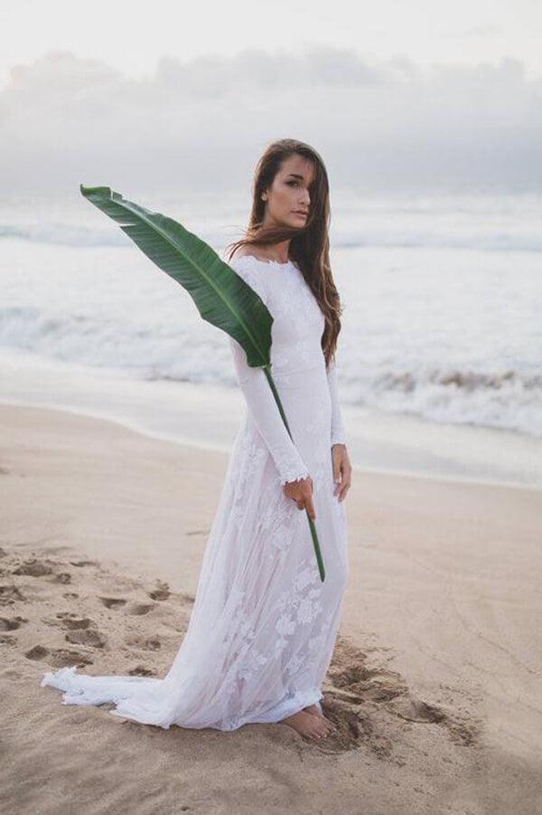 Rustic Ivory Mermaid Long Sleeves Backless Wedding Dresses. Bridal Dress. MW594