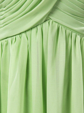 1. Sage Strapless Sweetheart Floor-length Bridesmaid Dress with Criss Cross Ruching Pleats.