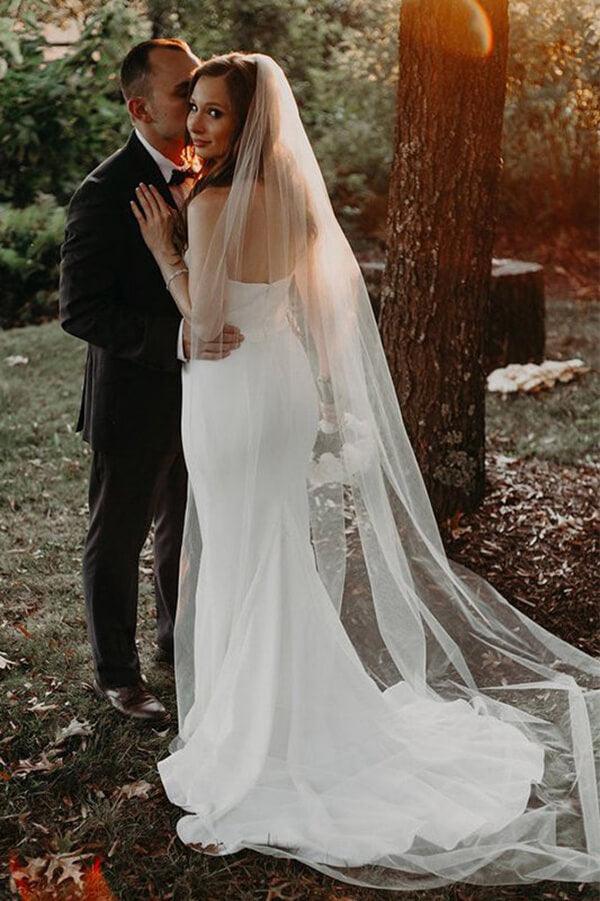Satin Mermaid Sweetheart Beach Wedding Dresses. Simple Bridal Gown. MW648