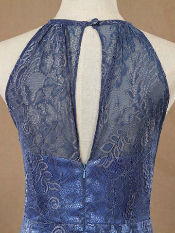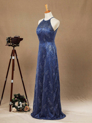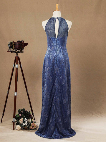 Sheath/Column Lace Floor Length Bridesmaid dresses Jewel Halter Neck Made-to-order-Evening Dress. Mother Dress.