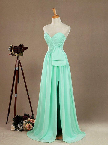 1. Sheath / Column Strapless Sweetheart Floor-Length Chiffon Bridesmaid Dress with Split detachable Train Made-to-order.