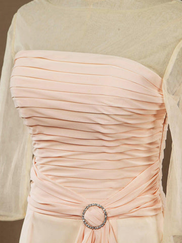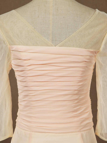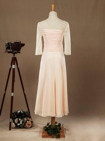 Sheath / Column Tea Length Chiffon Bridesmaid Dress with Long See Through Sleeves Made-to-order.