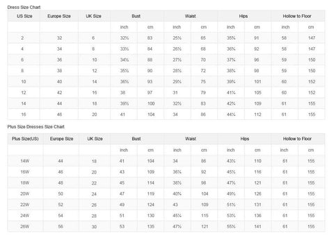 | US SIZE | BUST(inch/cm) | WAIST(inch/cm) | HIP(inch/cm) | HOLLOW TO HEM(inch/cm)) |