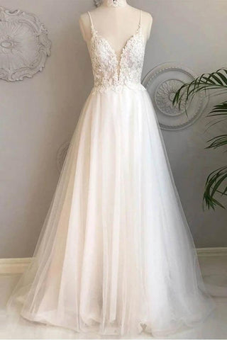 Simple Spaghetti Straps A-line Beach Wedding Dresses Lace Wedding Gowns.MW463
