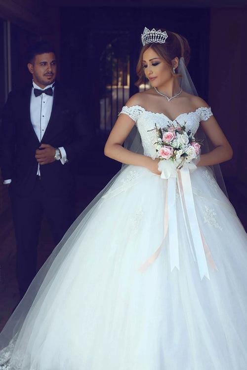 Simple Wedding Dresses Ball Gown Off-the-shoulder Floor-length Bridal Gown.MW452